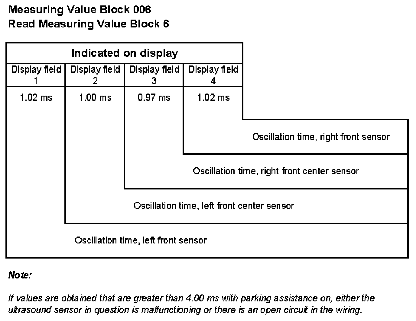 006 1 = Oscillation time, left front sensor, ms