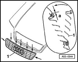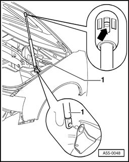 - Lift retaining spring (arrow) slightly using small screwdriver and pull gas-filled strut - 1 - off ball stud.