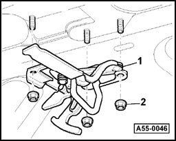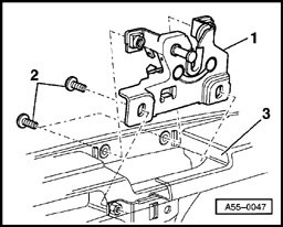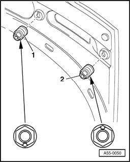 - To remove, remove nuts - 2 - and remove hood lock - 1 -.