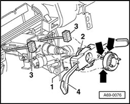 - Release locking lugs -arrows- and pull coil connector with slip ring off steering column switch.