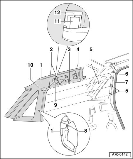 Upper C/D-pillar Trim, Removing And Installing