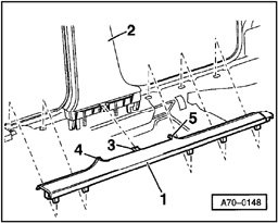 - Detach sill panel trim - 1 - from lower B-pillar trim - 2 - at retainer - 5 -.