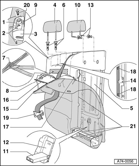 The outer rear head restraints are not identical with the front head restraints. Mark accordingly with adhesive tape if all head restraints are removed together.