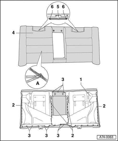 - Lift seat cover fabric - 4 - and cut through upholstery clips (inset - A -).
