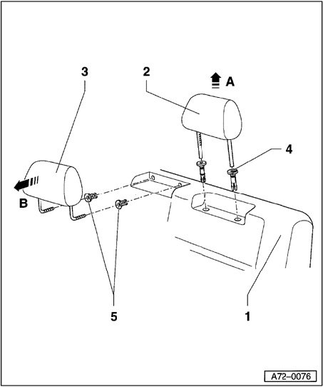 The outer rear head restraints are not identical to the front head restraints. Mark accordingly with adhesive tape if all head restraints are removed together.