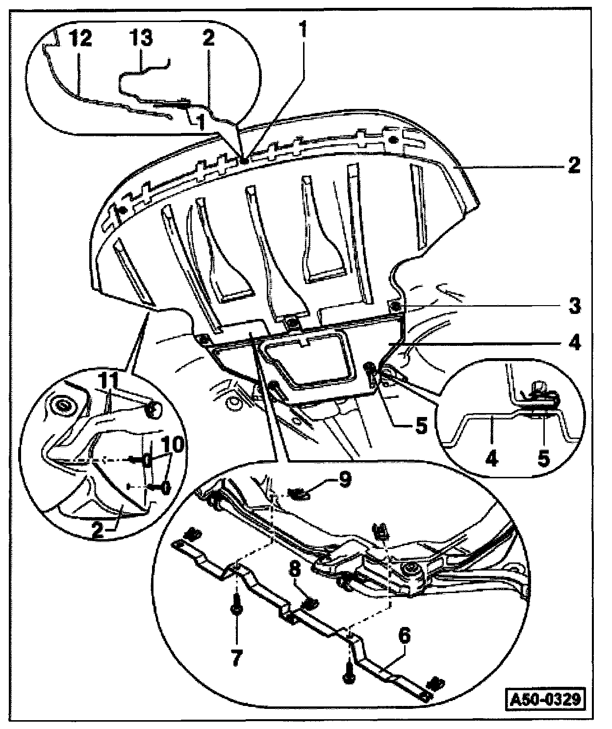 - If rear noise insulation panel -4- is installed, use longer quick- release screws.