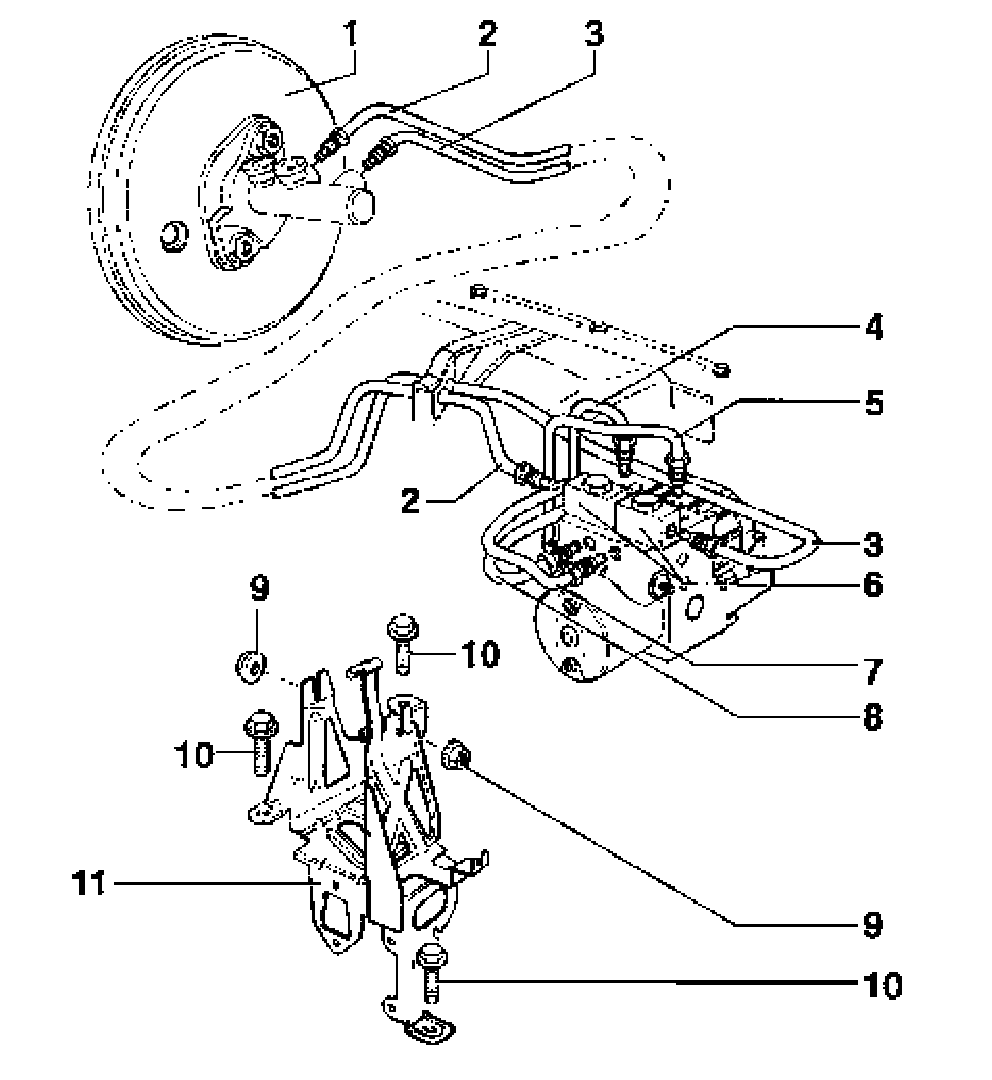 ^ Hydraulic unit to left-front brake caliper