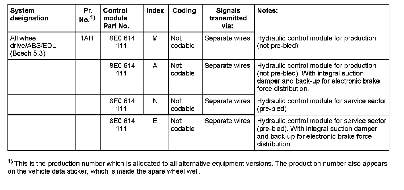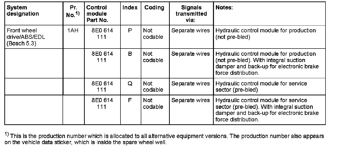 ABS/EDL Control Module Versions