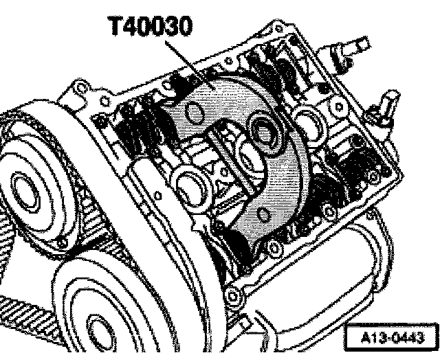 - T40030 camshaft adjuster gauge must be inserted at both cylinder heads