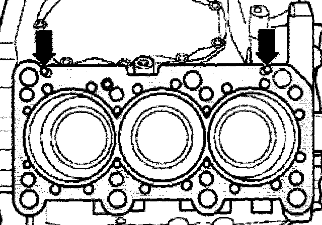 ^ Pocket holes in cylinder block for cylinder head bolts must be free of oil and coolant.