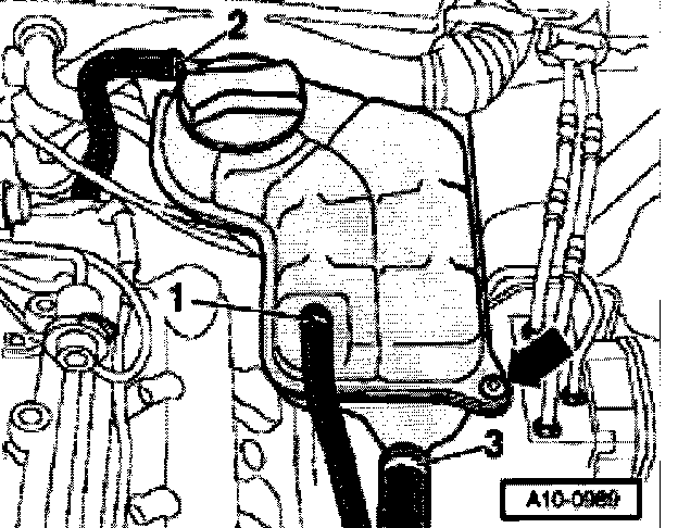 - Tie coolant expansion tank with connected coolant hoses -1 to 3- to side.