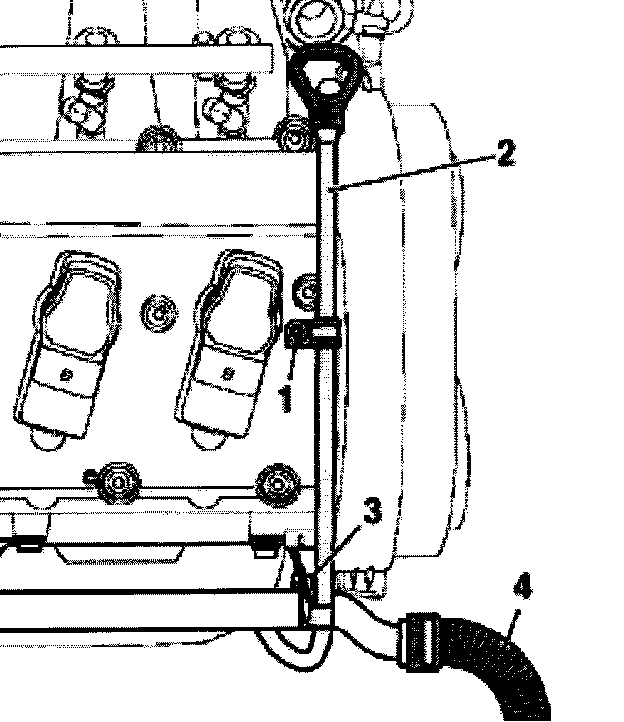 - Pull out guide tube for oil dipstick -2- from the oil pan (upper part) toward top and swing it forward for removal.