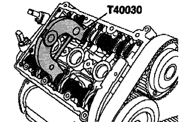 Note: Slightly turn crankshaft back and forth so that the claw of T40030 camshaft adjuster gauge can properly grab the camshafts.