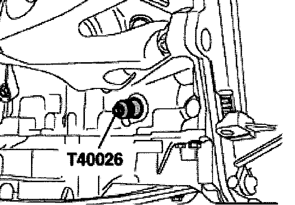 - Remove T10026 alignment bolt and thread sealing plug of TDC marking with new O-ring into cylinder block.