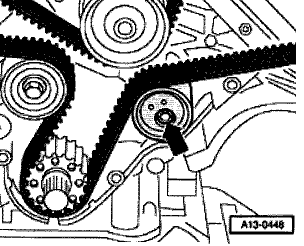 - Turn with 45 Nm in direction of arrow to pretension toothed belt.