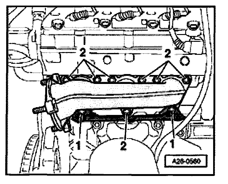 - Remove bolts -1- and -2- at lines of secondary air injection.