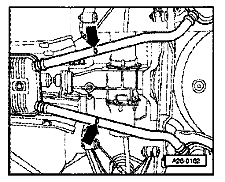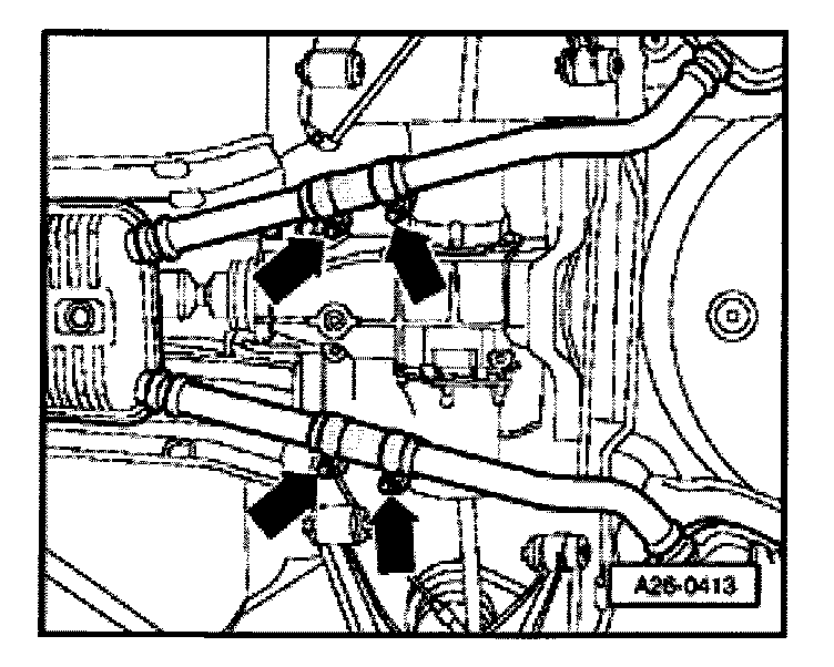 - Using VAG1523A body repair saw, cut exhaust pipe at separating point (arrow) at right angle.