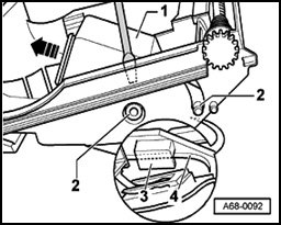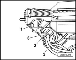- Disconnect connector - 2 - by squeezing together retainers - 3 -.