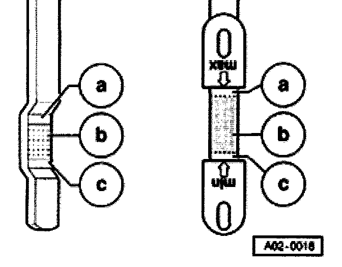 c. Oil must be topped off. After topping off, it is sufficient if oil level is somewhere in range -b- (shaded area).