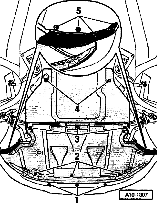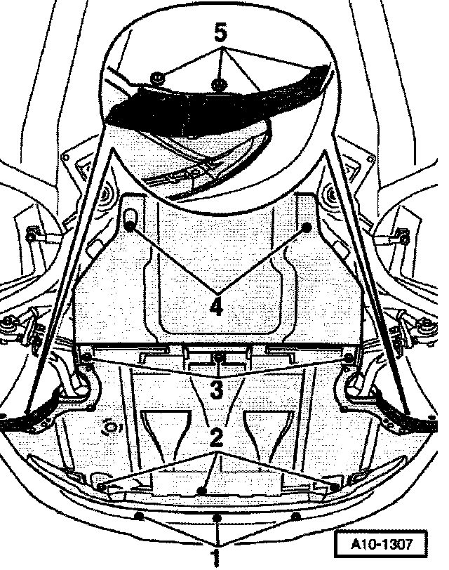 - Loosen mounting parts -1- to -5- and remove noise insulation (2 parts).
