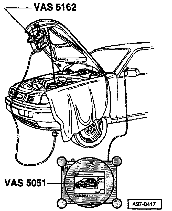 - Vehicle diagnostic, testing and information system VAS 5051 must be connected. Vehicle self-diagnosis and vehicle system "02. Transmission electronics" must be selected.