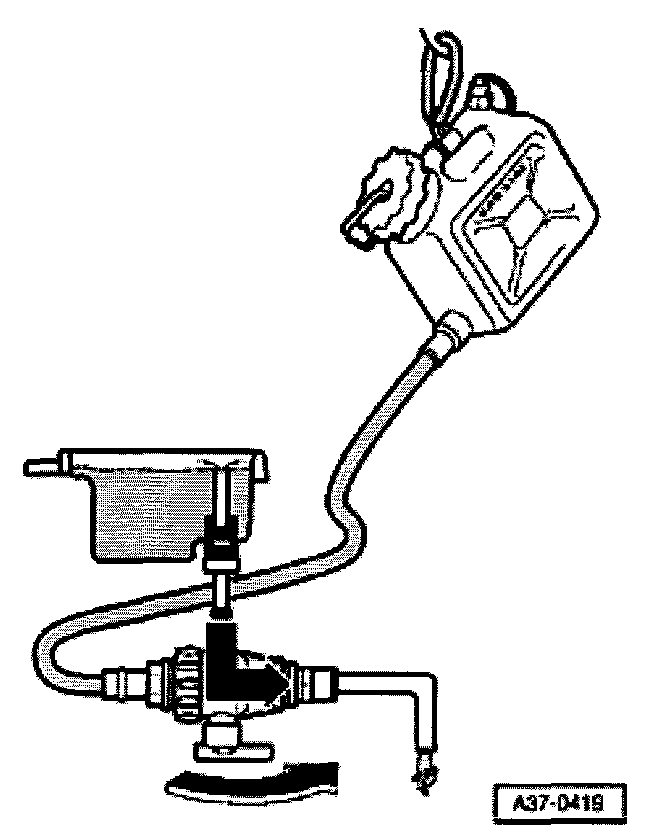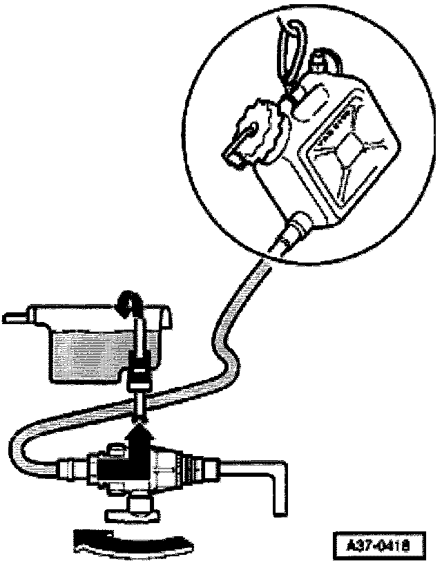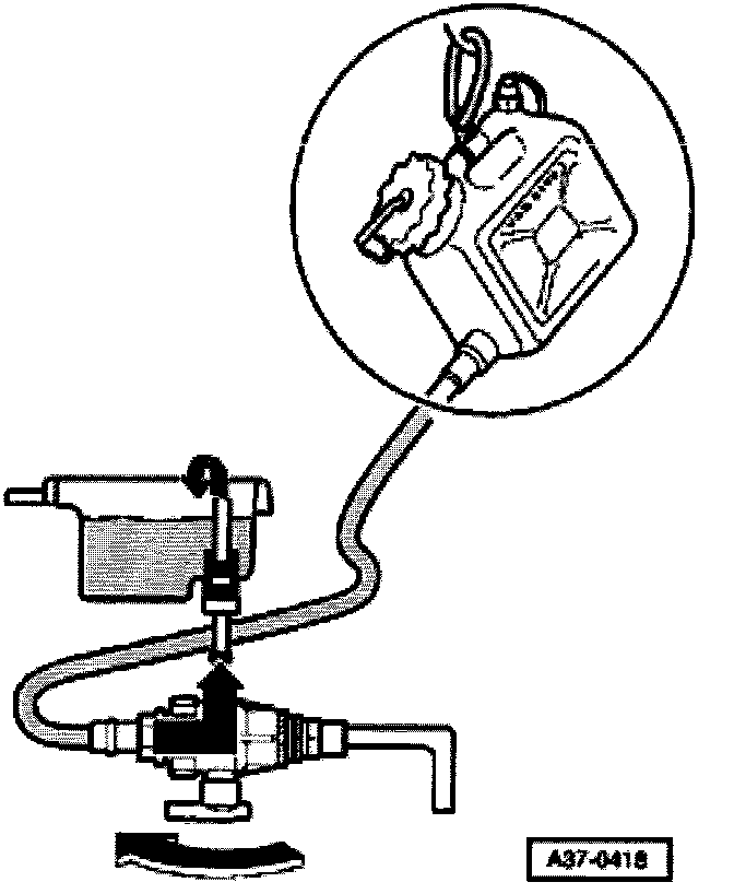 - Attach full reservoir of ATF filling device VAS 5162 as high as possible on vehicle.