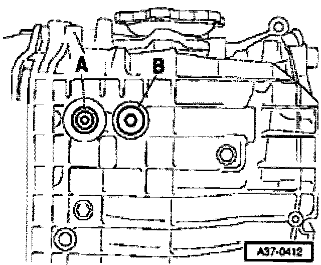- Unscrew ATF drain plug -A- using socket attachment 3357 and drain off ATF.
