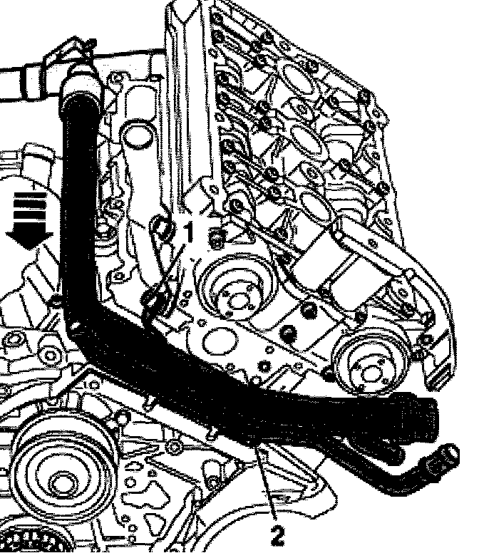- Remove coolant pipe toward front (arrow).