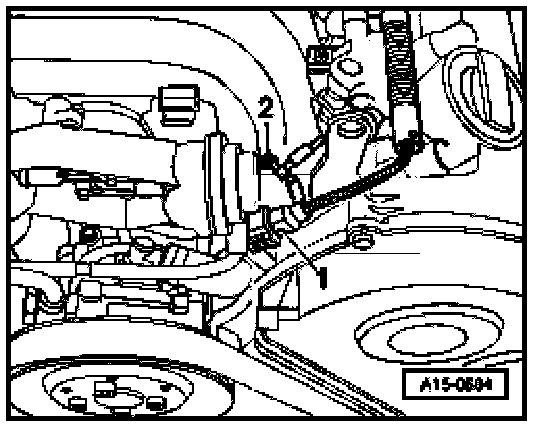 - Connect one terminal on solenoid valve to engine Ground using test leads and alligator clamp from VAG 1594 A.
