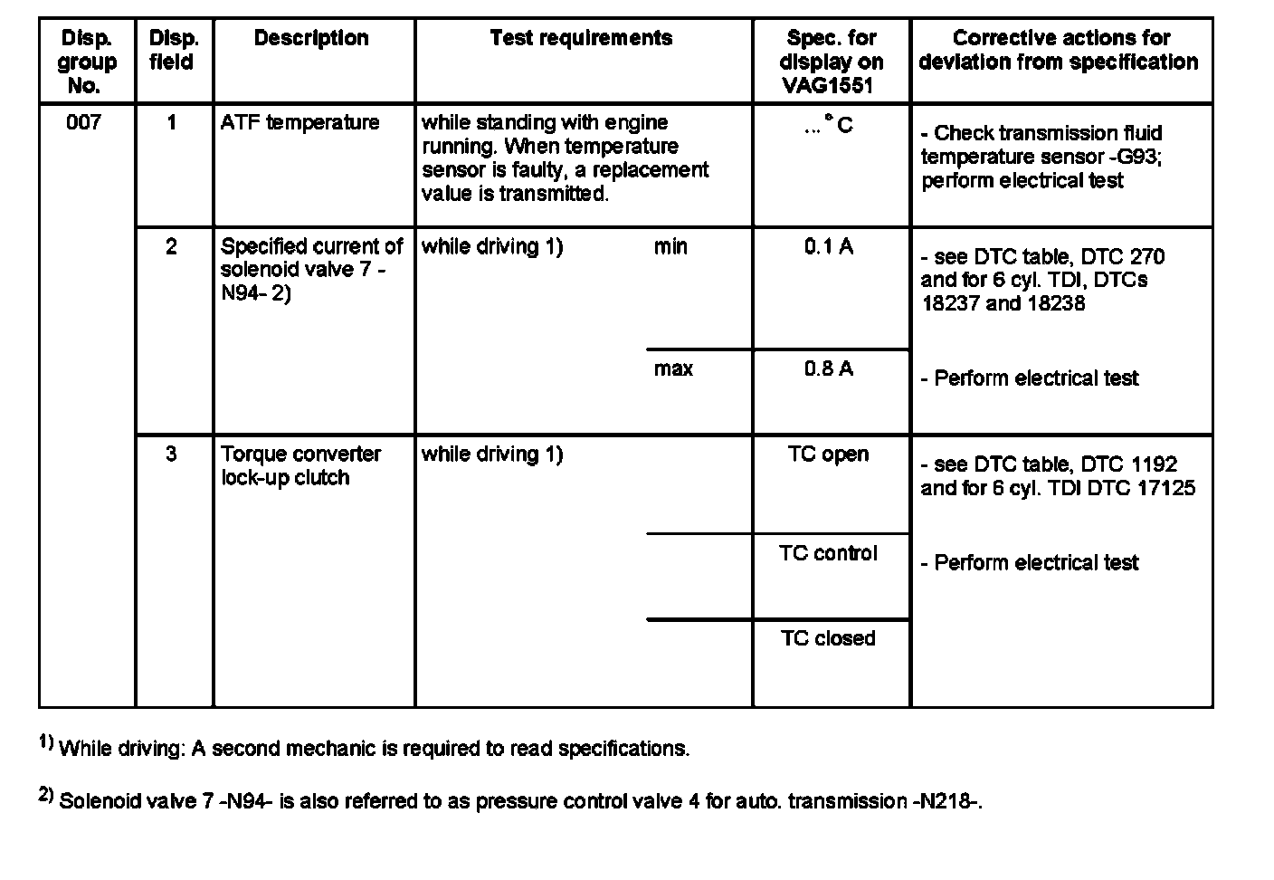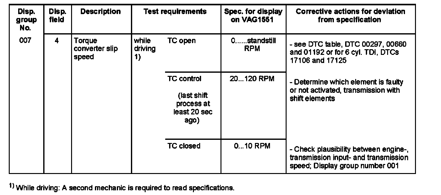 ^ "TC closed": Shifting process must be complete (wait at least 1 sec.), the Torque Converter (TC) must be closed and the accelerator pedal value must be constant