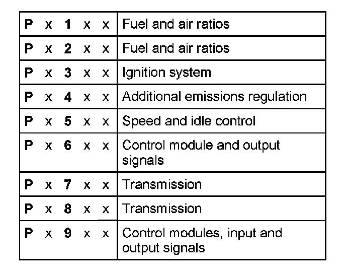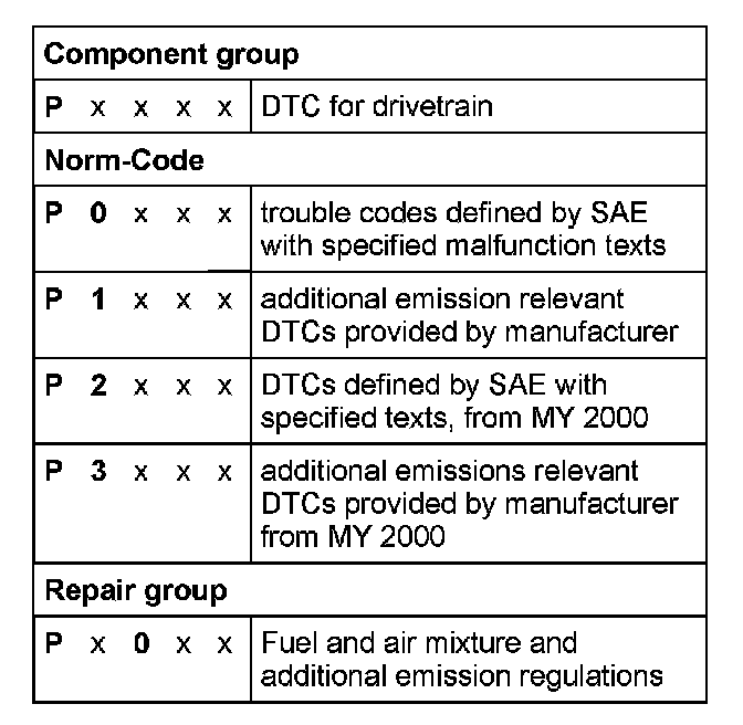 The DTC consists of a 5-digit alpha-numeric value with the following meaning: