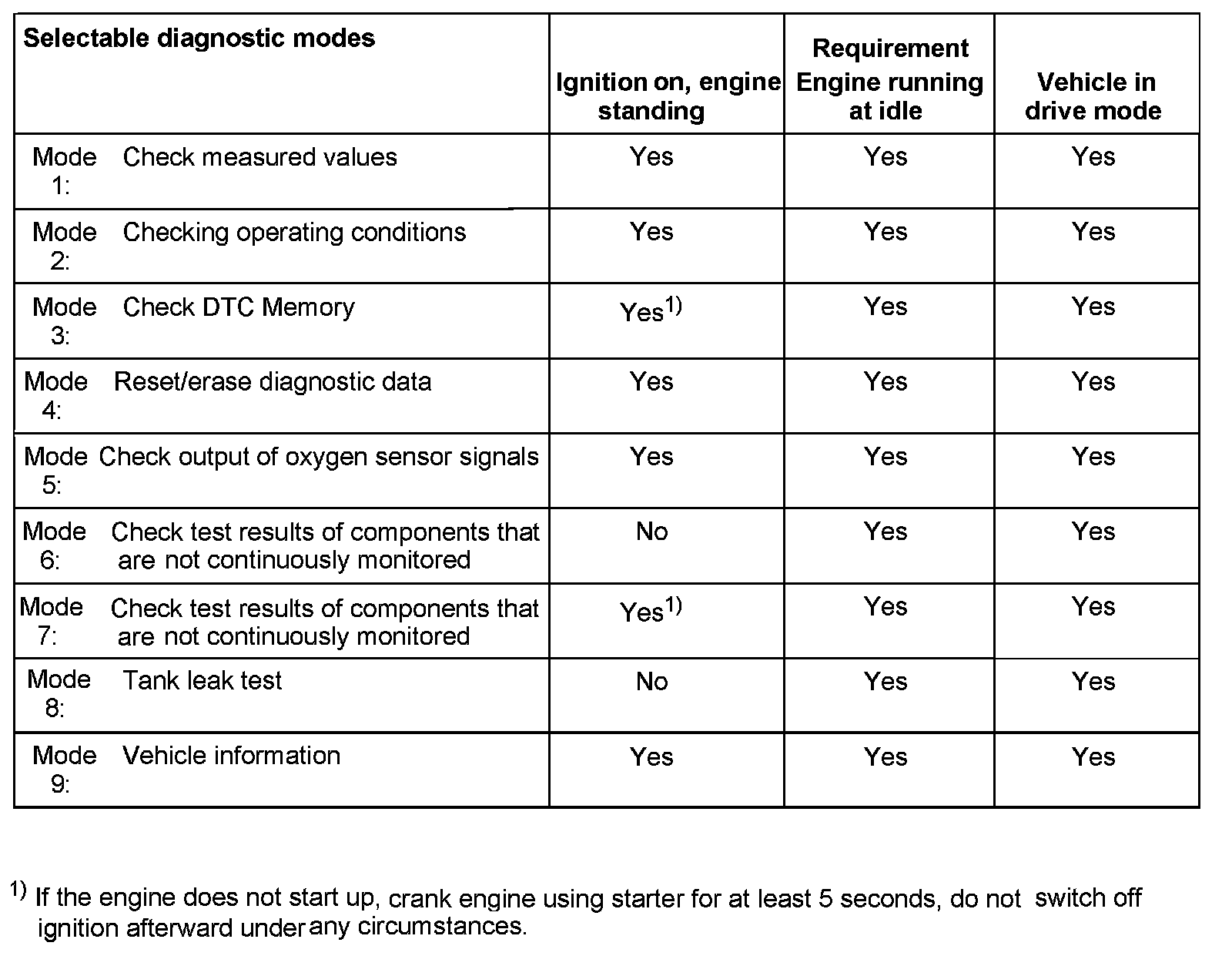 - The following diagnostic modes monitor all components and systems which influence the emission quality.
