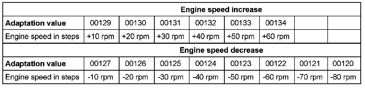 - The idling speed can be decreased or increased by using the "Adaptation" function, channel 01.