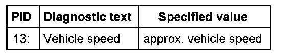 - Select the desired measuring value "PID 13: Vehicle speed".