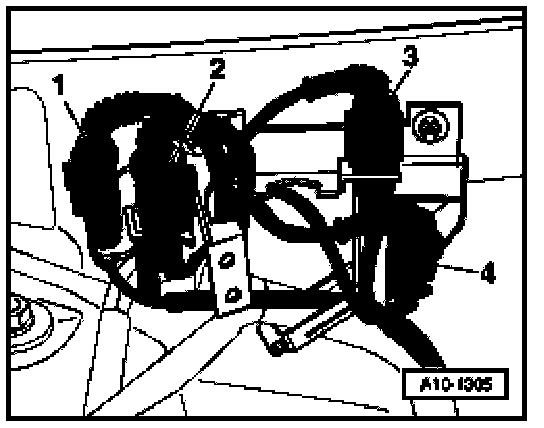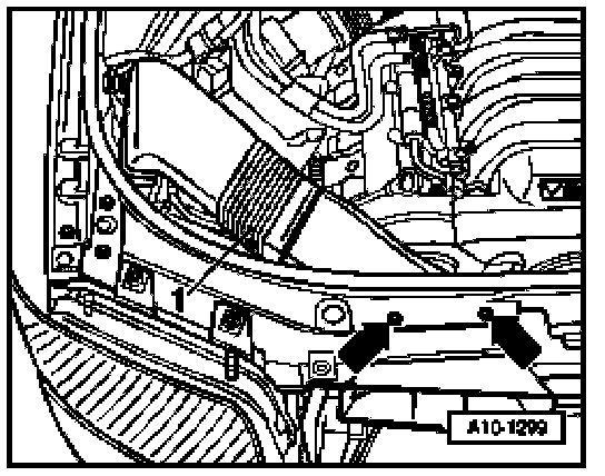 - Remove cover -1- in engine compartment (right side).