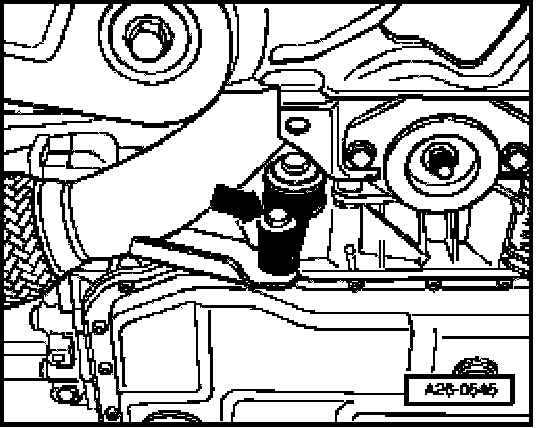 - Slightly lift transmission and installed piece of wood using VAG1383A engine/transmission jack.