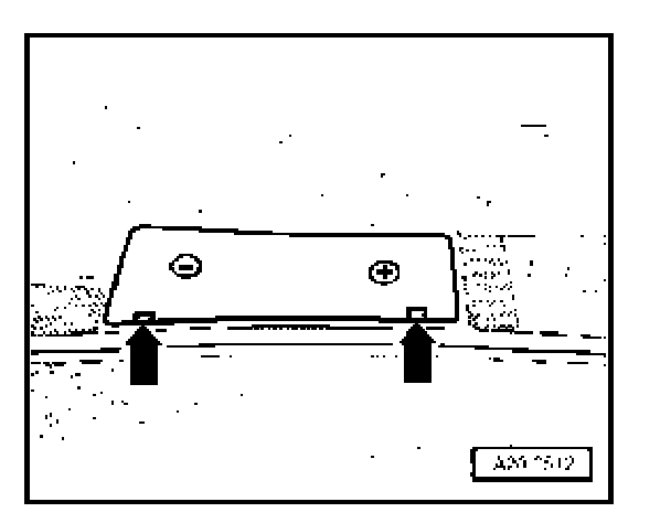 - With ignition switched off disconnect battery Ground strap -arrow-.