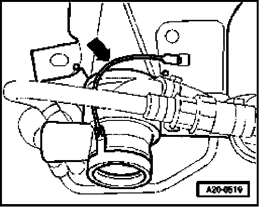 - Disconnect vent lines -arrows- at fuel filler neck.