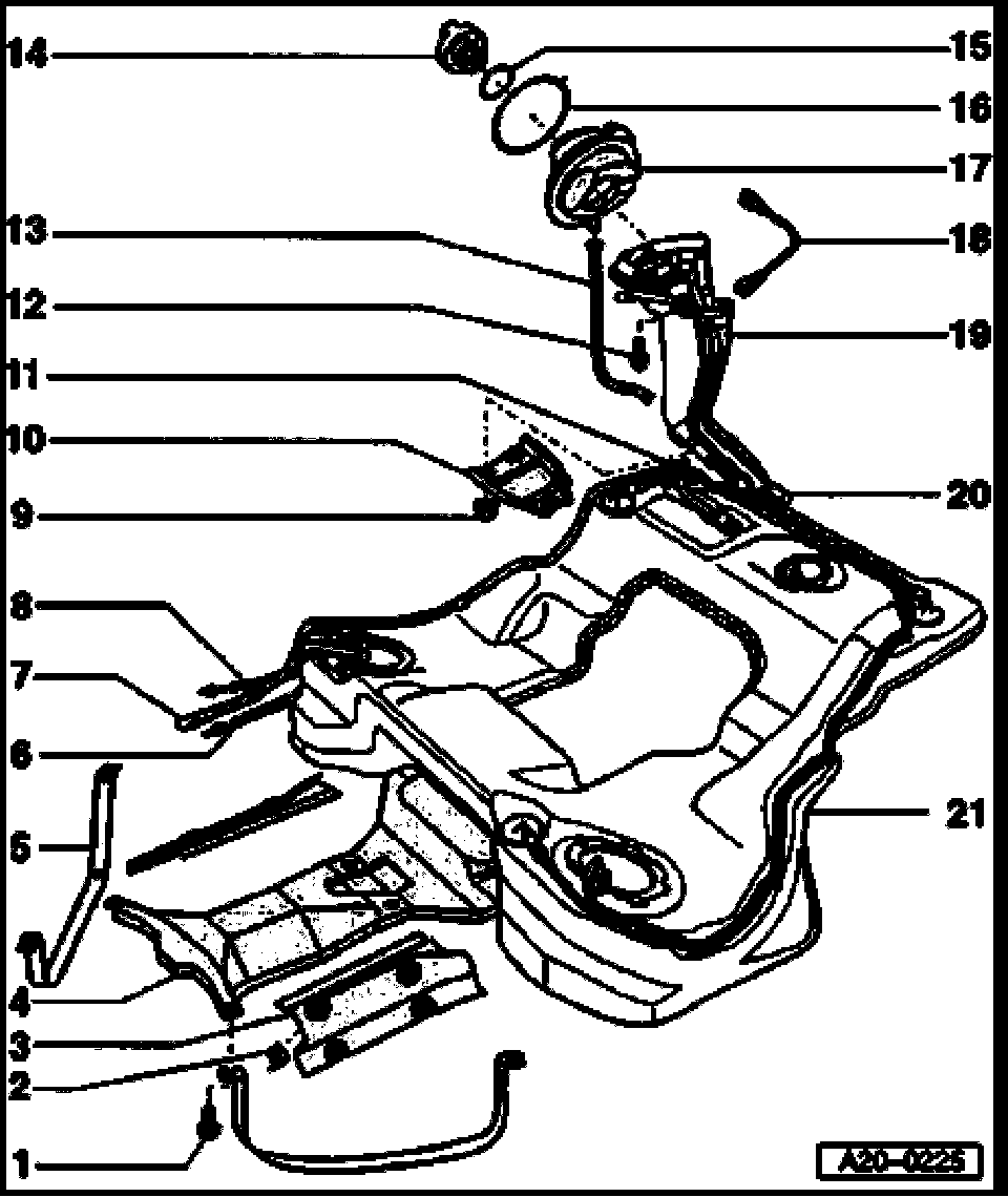 - Serves to secure fuel filler neck and Ground (GND) connection -item 18 -