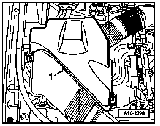 - Remove cover -1- on left in engine compartment.