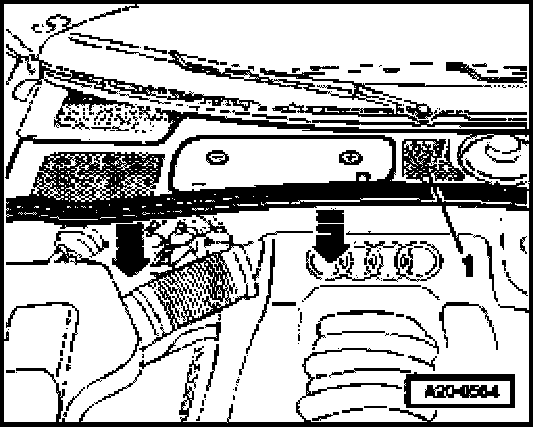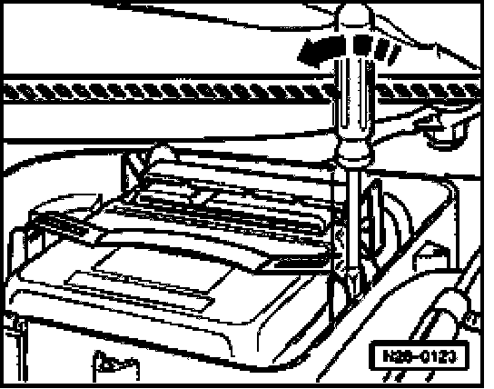 - Remove cover -1- on right in engine compartment.