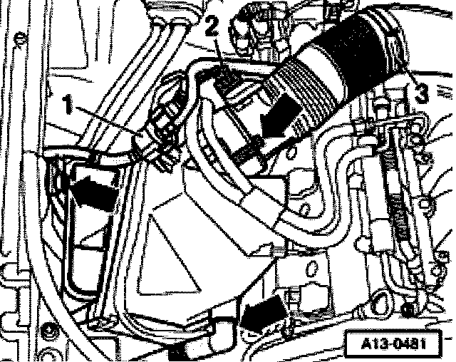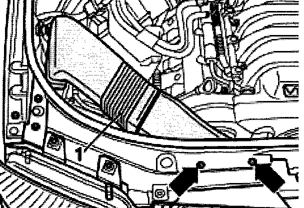 - Remove cover -1- in engine compartment (right side).