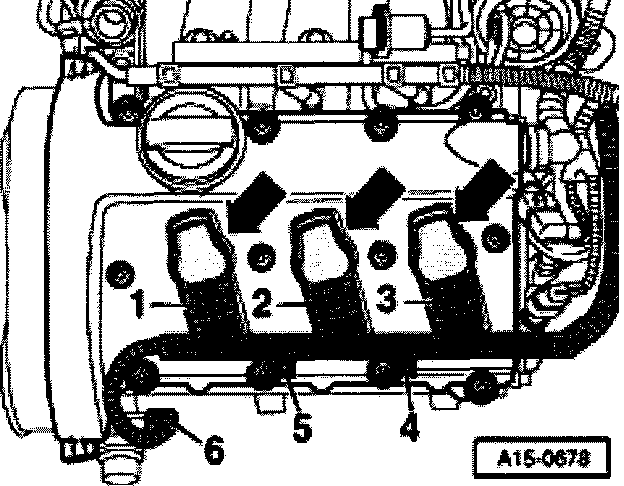 - Remove ignition coils (arrows).