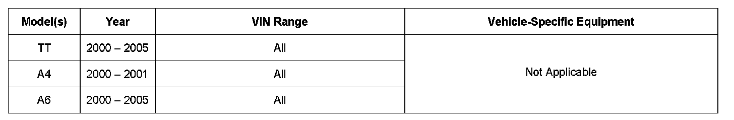 All parts and service references provided in this TSB are subject to change and/or removal. Always check with your Parts Department and service manuals for the latest information.