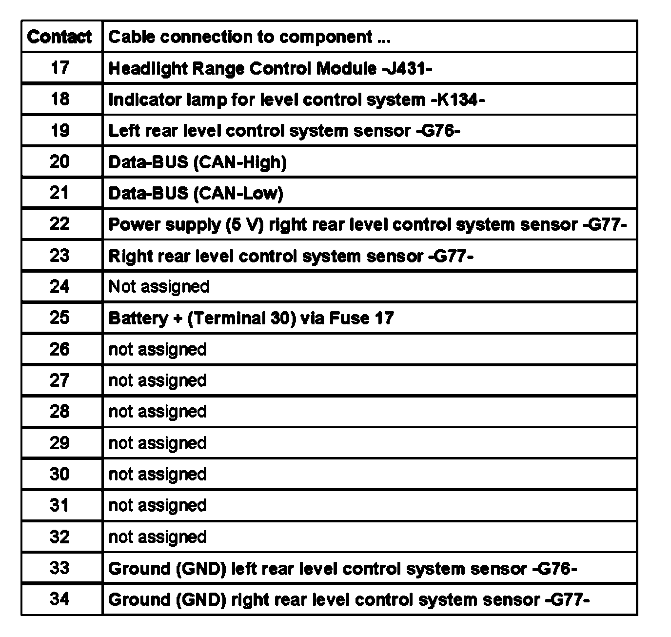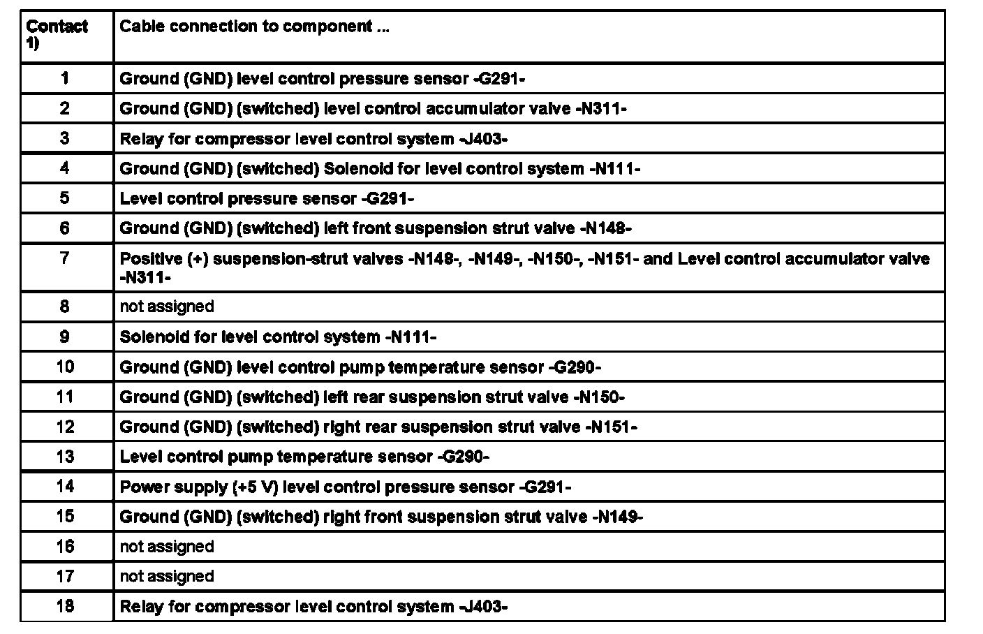 Contact assignment of multi-pin connector I - 18-pin - on wiring harness/self leveling suspension system -JI97-