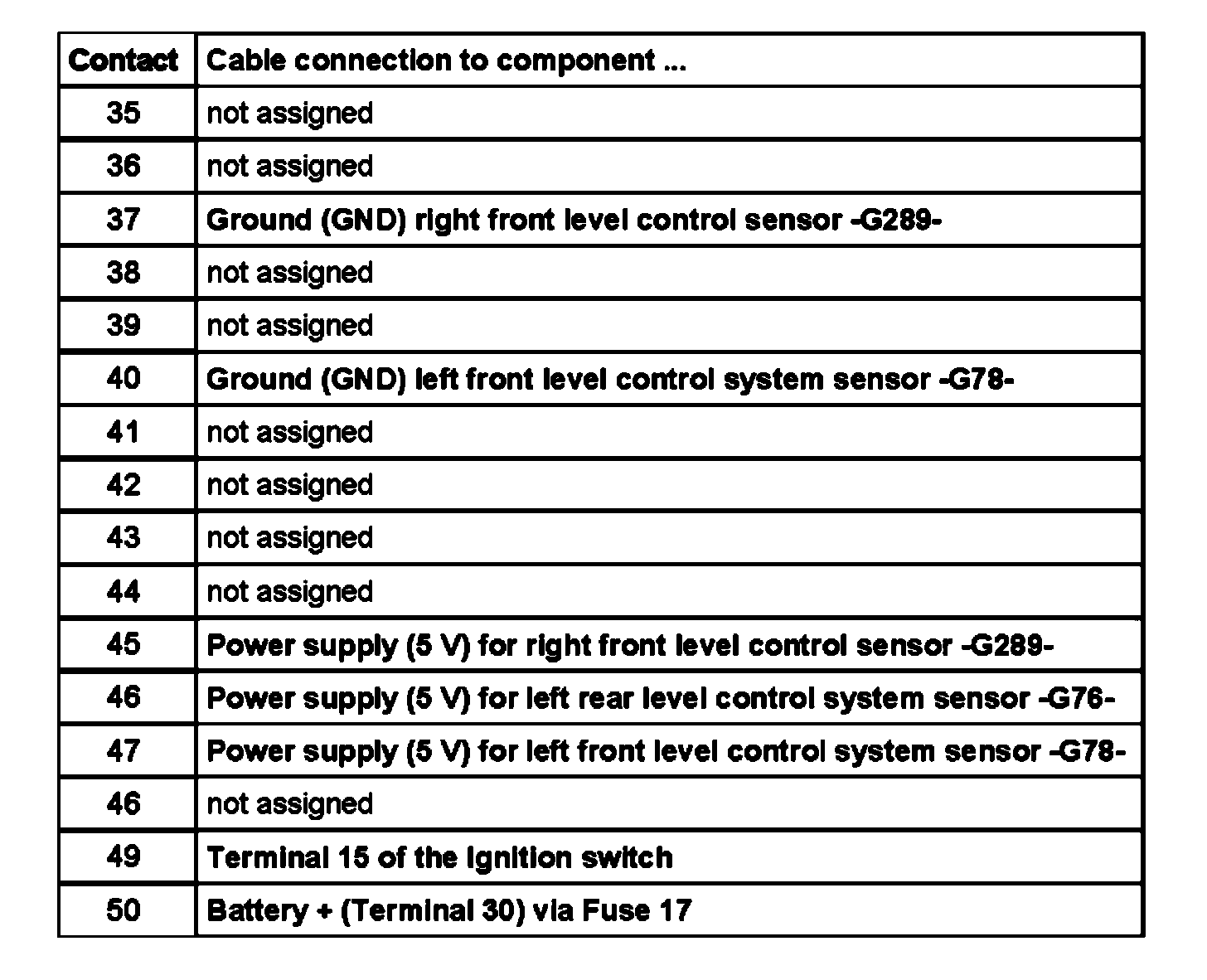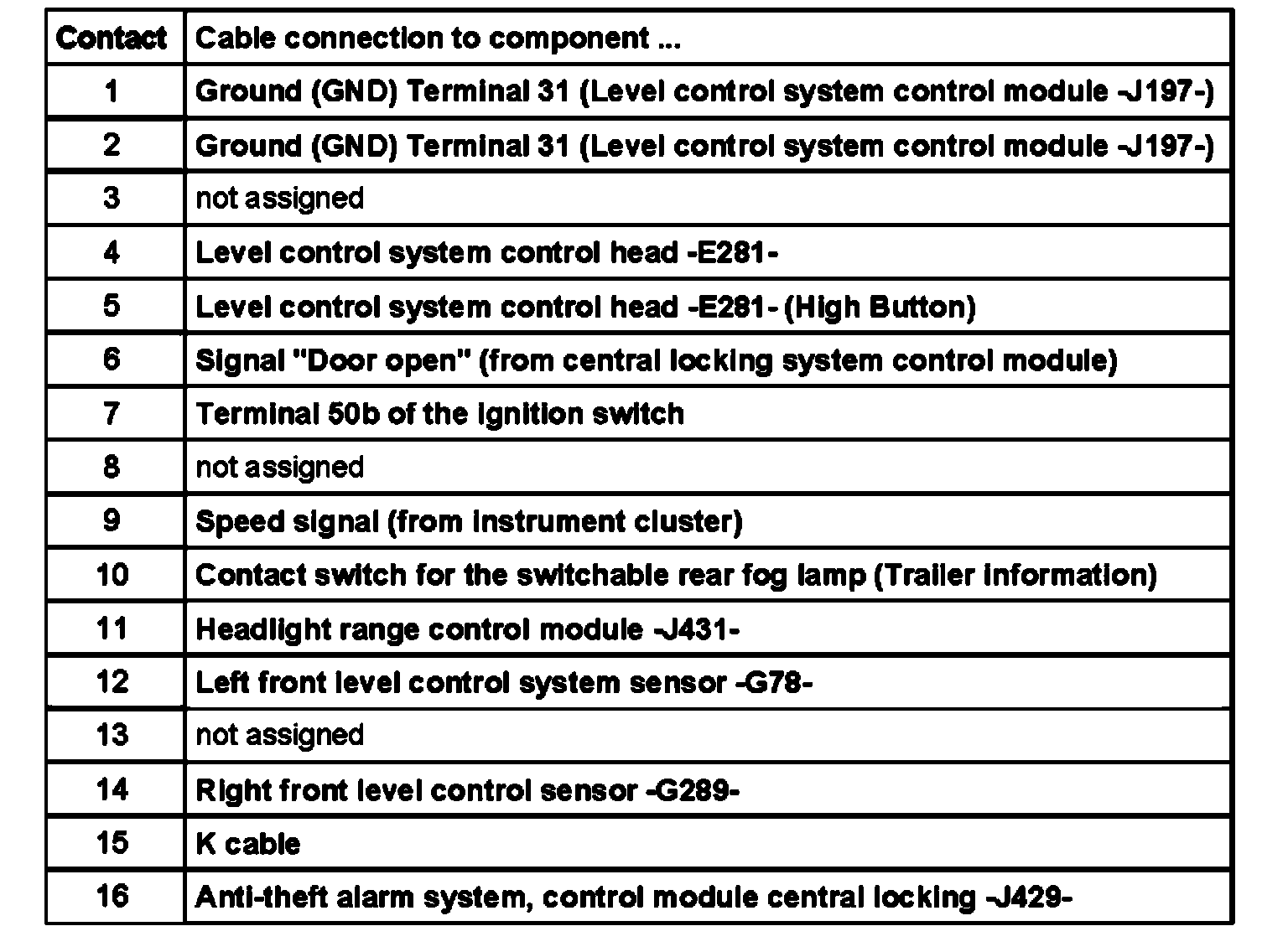 Contact assignment of multi-pin connector II - 50-pin -to wiring harness/self leveling suspension system -J197-
