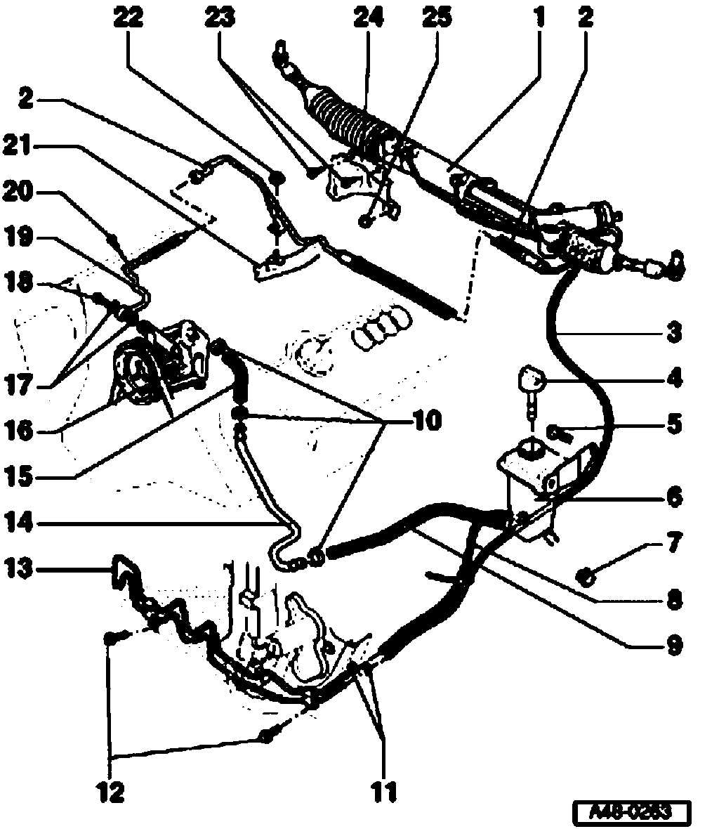 Oil circulation in Right Hand Drive (RHD) vehicles is identical to Left Hand Drive (LHD) vehicles except that the hydraulic lines are routed from left to right at the steering gear.
