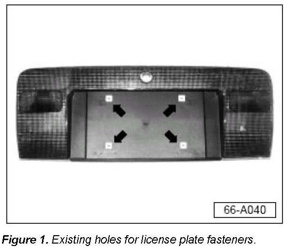4. Install replacement license plate fasteners (Part No: N 909 460 01) into existing holes (Figure 1). Make sure the fasteners are flush with the license plate holder.