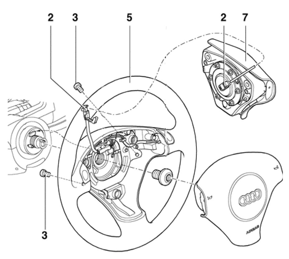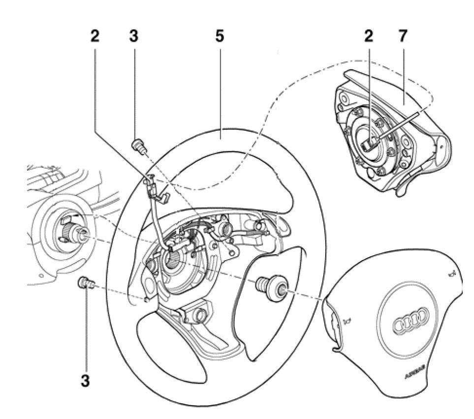 Overview: This procedure describes removal and replacement of the air bag for the 3-spoke steering wheel on 2003 model year Audi A4/A6 vehicles.