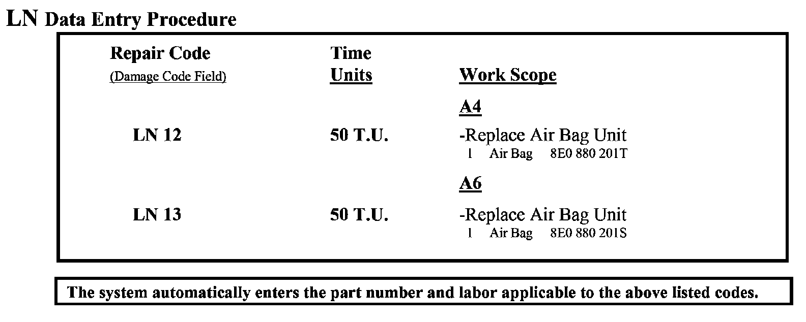 The individual affected vehicles are identified on the OTIS View Campaign screen by the code LN. Only these vehicles will be reimbursed as follows: